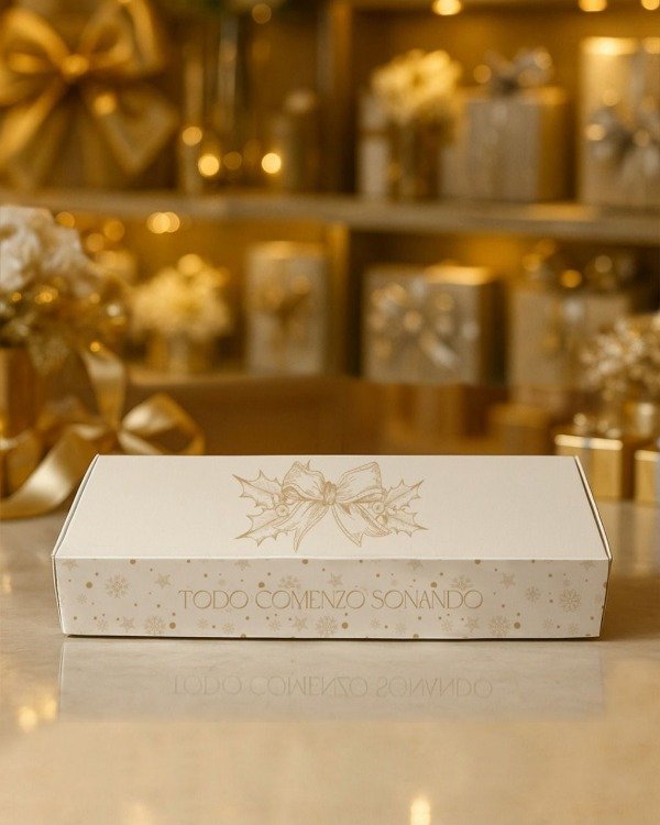Box premium - Blanca impresión tinta dorada + laminado 33x11x5