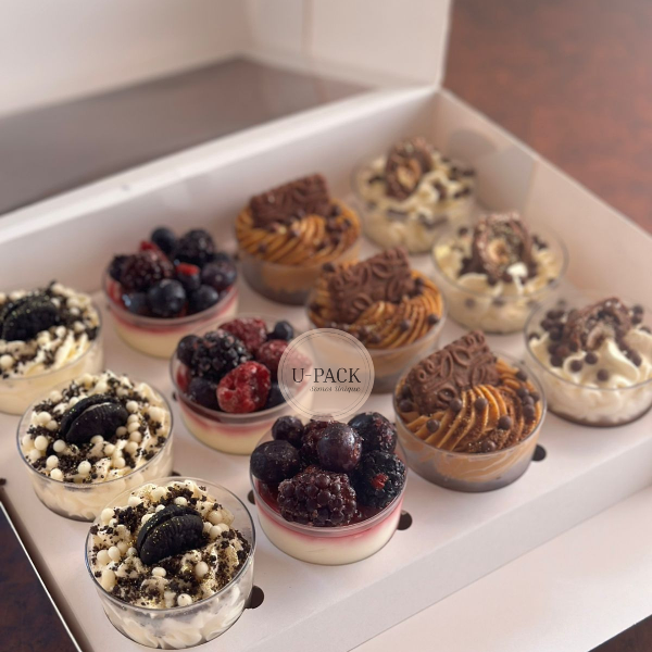 Vaso Cristal Postres - Shot 100cc + Box para 12 shots 27x20x7 cm - LÍNEA PREMIUM